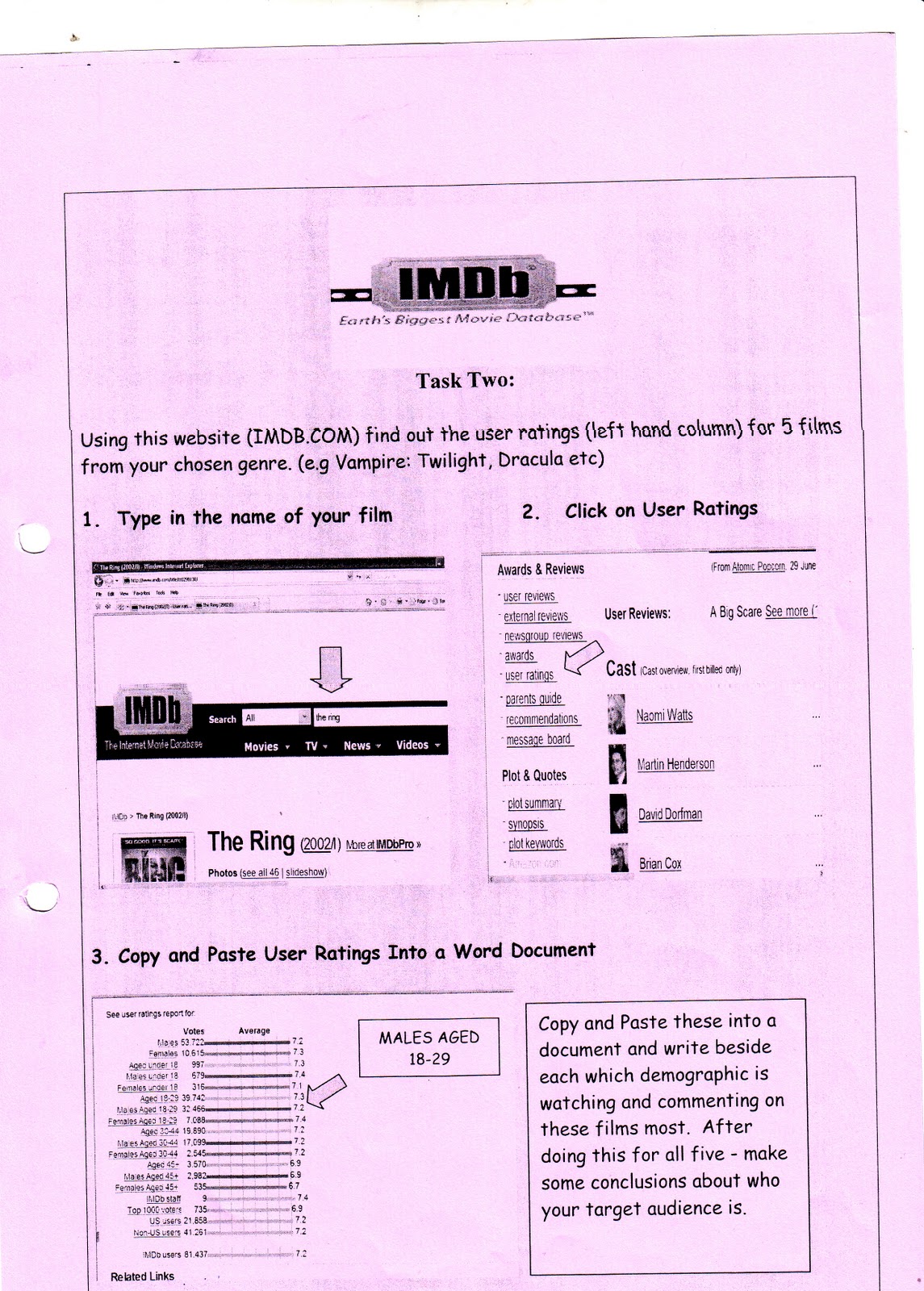For the planning, and purple folder work, we split the pages into an equal amount and completed them; however sheets such as the storyboard, script and mise-en scene sheets, we both discusses, voiced our opinions and completed them together.